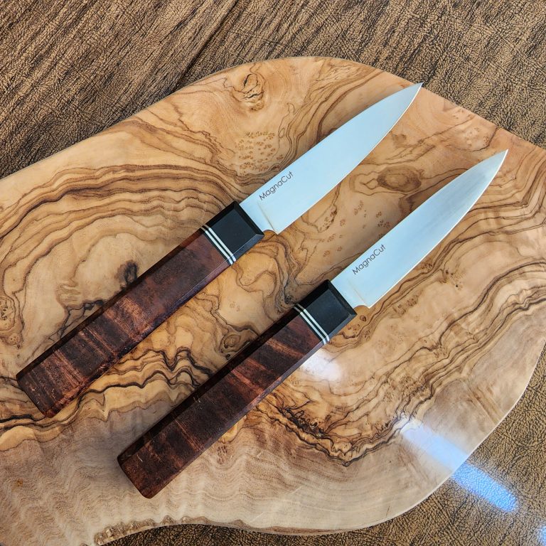0.075″ Magnacut 63-64RC 8.5″ overall, 4″ blade 2.2 oz Stabilized maple burl, g10