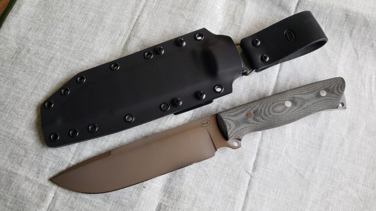 Magnacut 0.18″ 63 RC 5.5″ blade, 10.3″ overall vintage micarta
