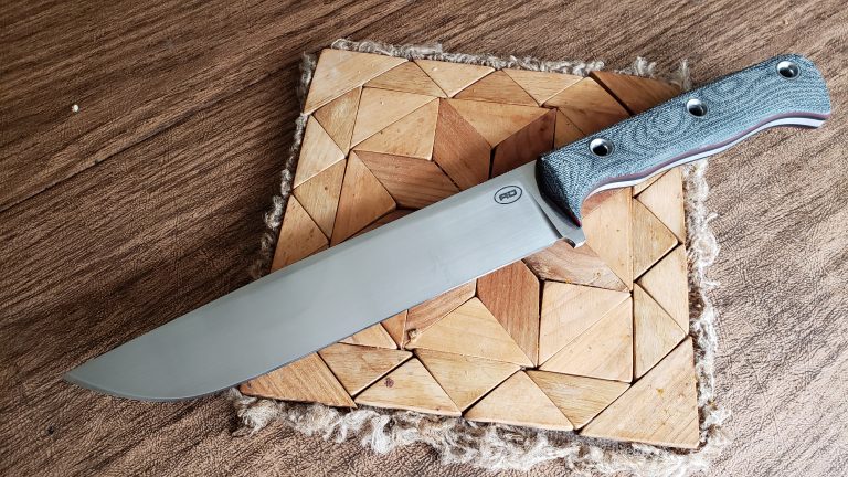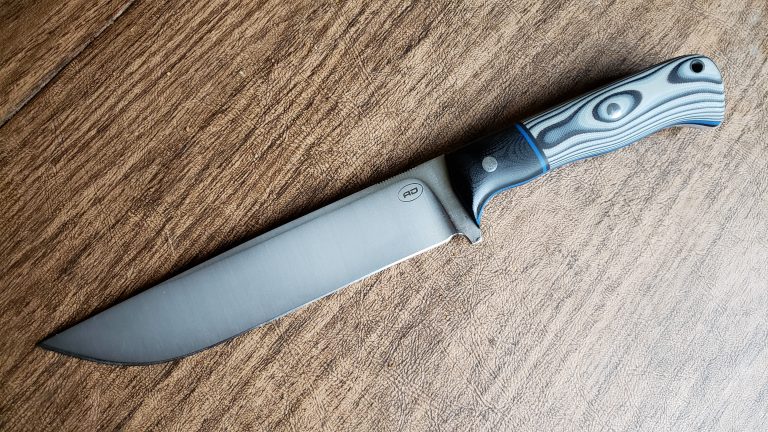 0.17″ AEB-L 61.5RC 11″ OAL, 6.25″ blade, 10.3 oz corby bolts, black canvas micarta