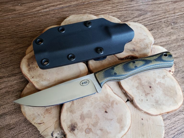 Hunter sidekick H35 CPM S30V 0.125″ 60RC 3.5″ blade, 7.25″ OAL 3.65 oz burlap micarta, G10, micarta CE liners and pins. [huge_it_gallery id=”43″]