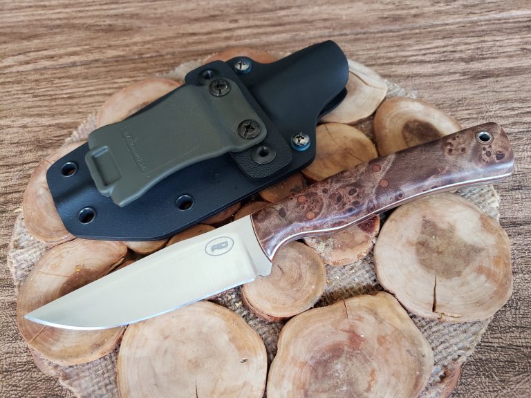 0.125″ S35VN, 60RC 3.5″ blade, 7.75″ overall, 3 oz Oregon maple burl (stabilized), micarta CE [huge_it_gallery id=”47″]