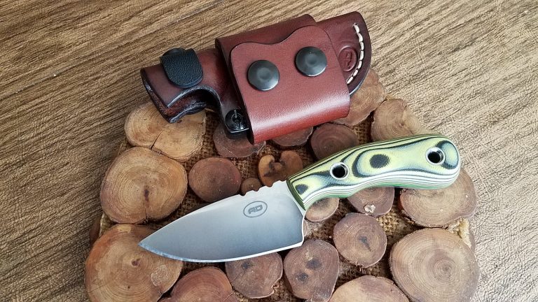 Sandvik 14CN28 tempered to 60RC 0.128″ thick, 7.3″ OAL, 3.25″ blade 3.5 oz G10 handle, mosaic pins