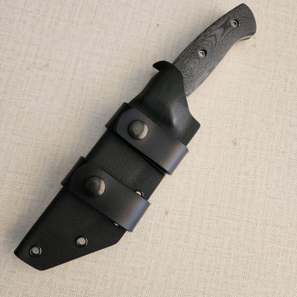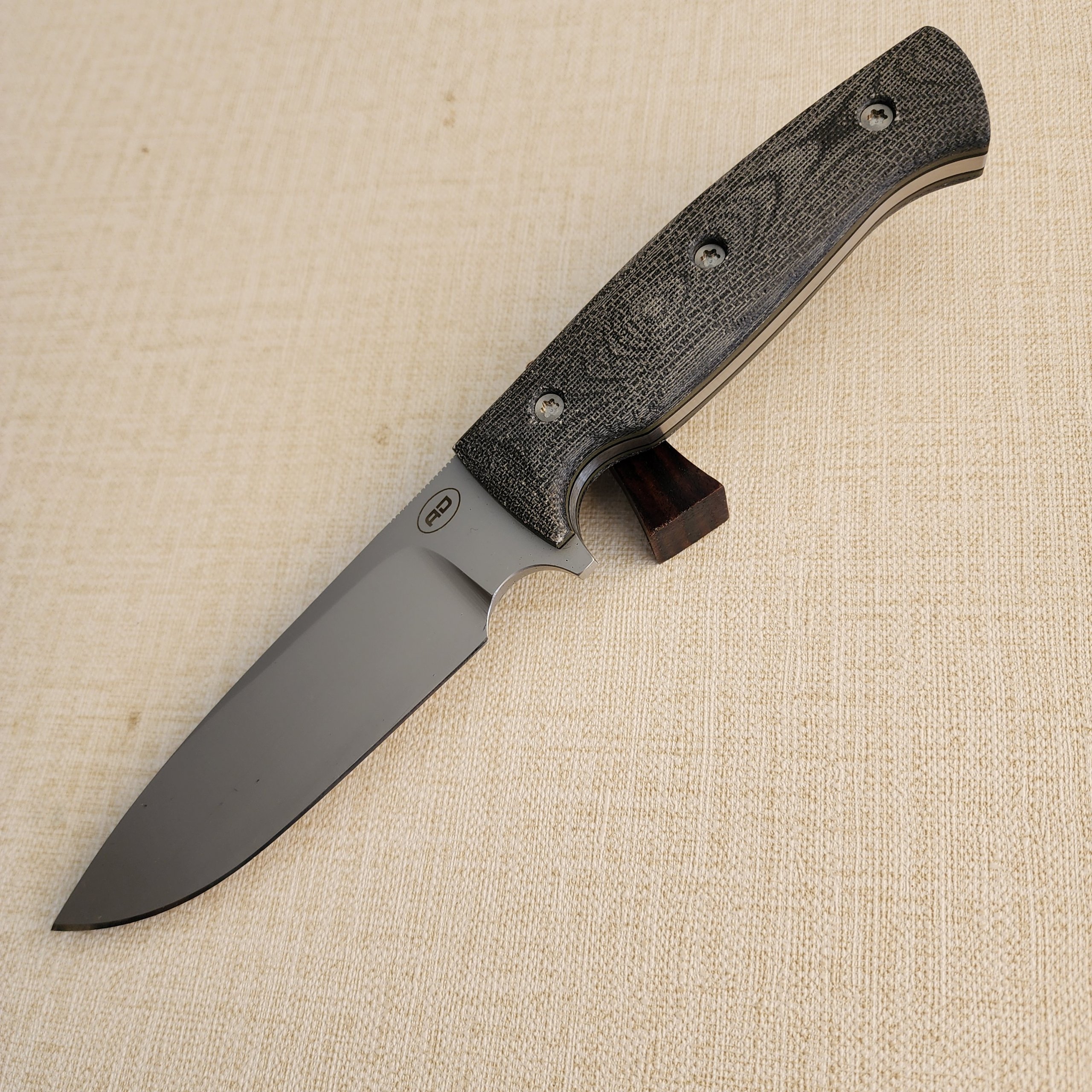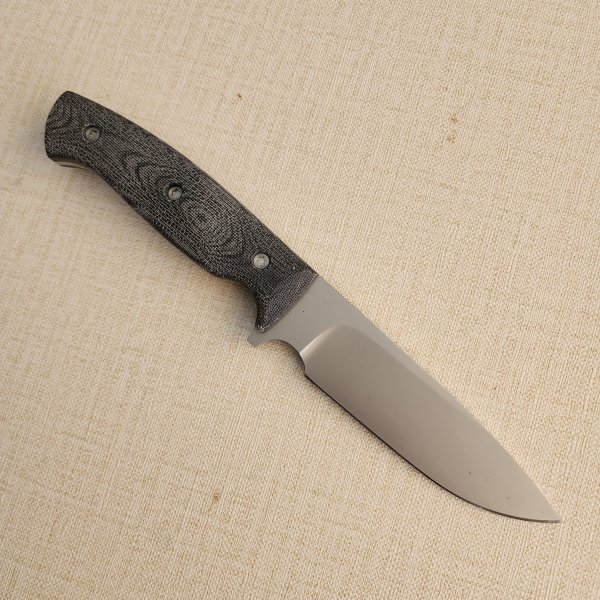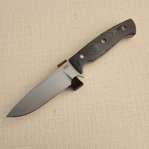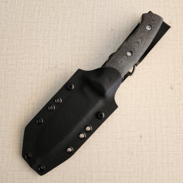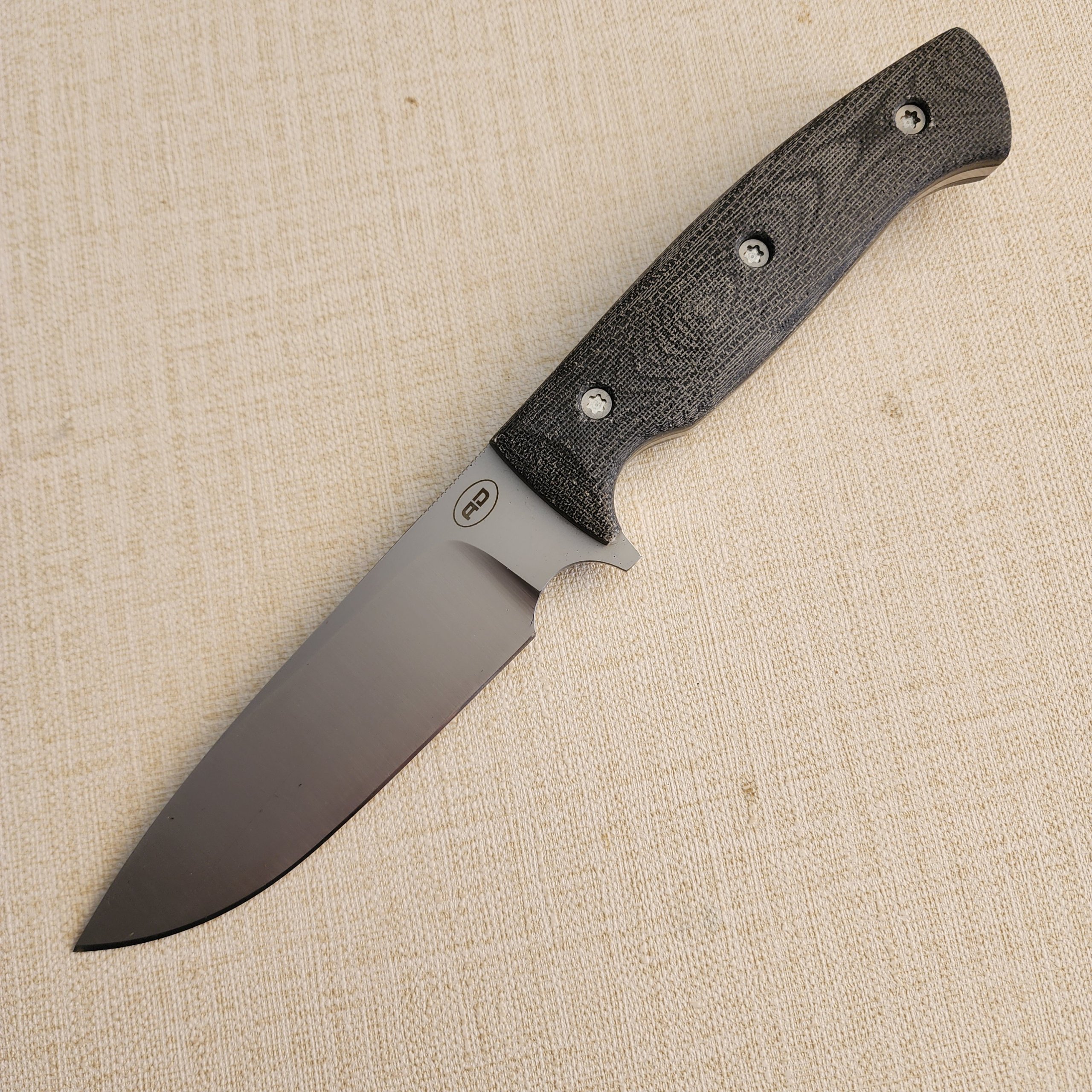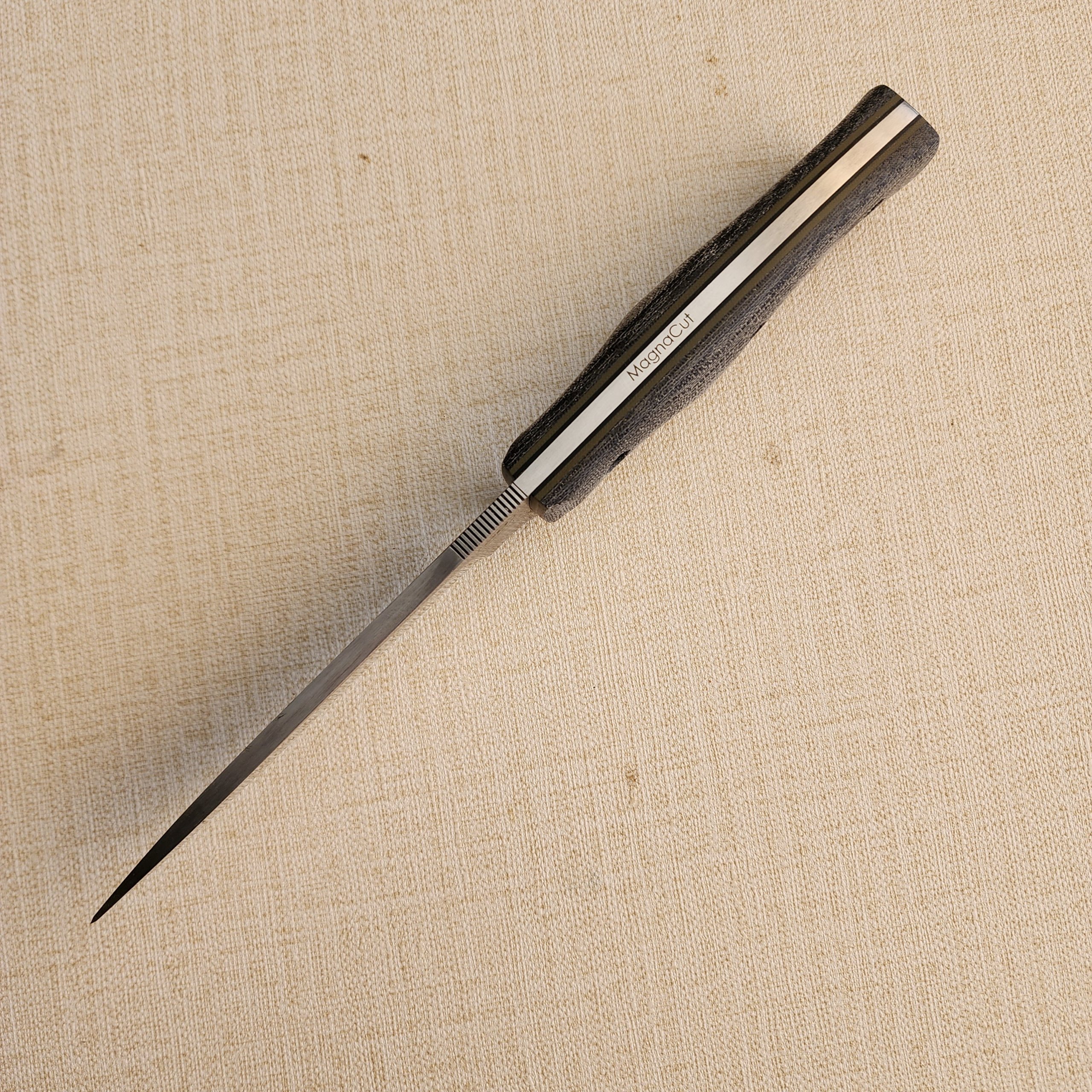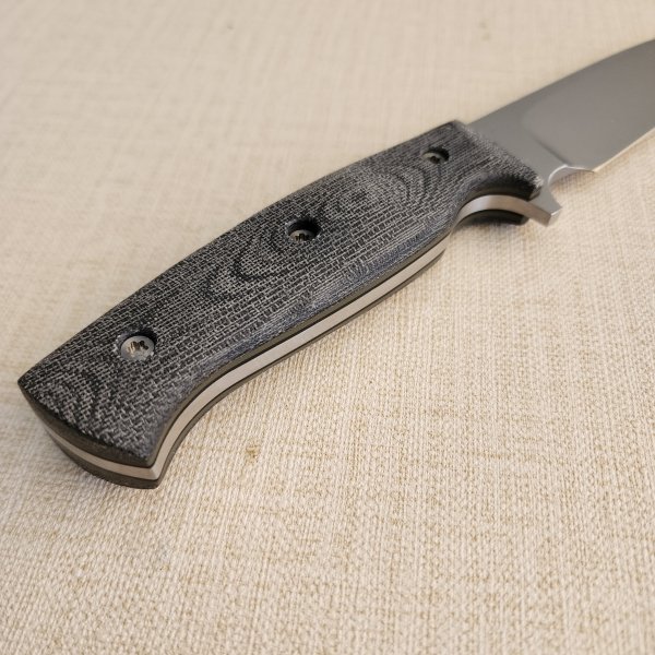 Custom Camper 5″ bladeavdronFebruary 23, 2026Midsize knives, Other .18″ Magnacut 62-63RC 10″ overall, 5″ blade, 8.5 oz Terotuf, G10