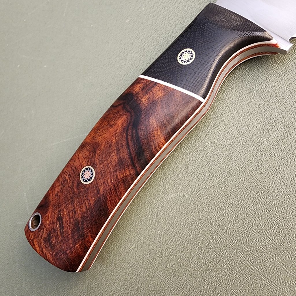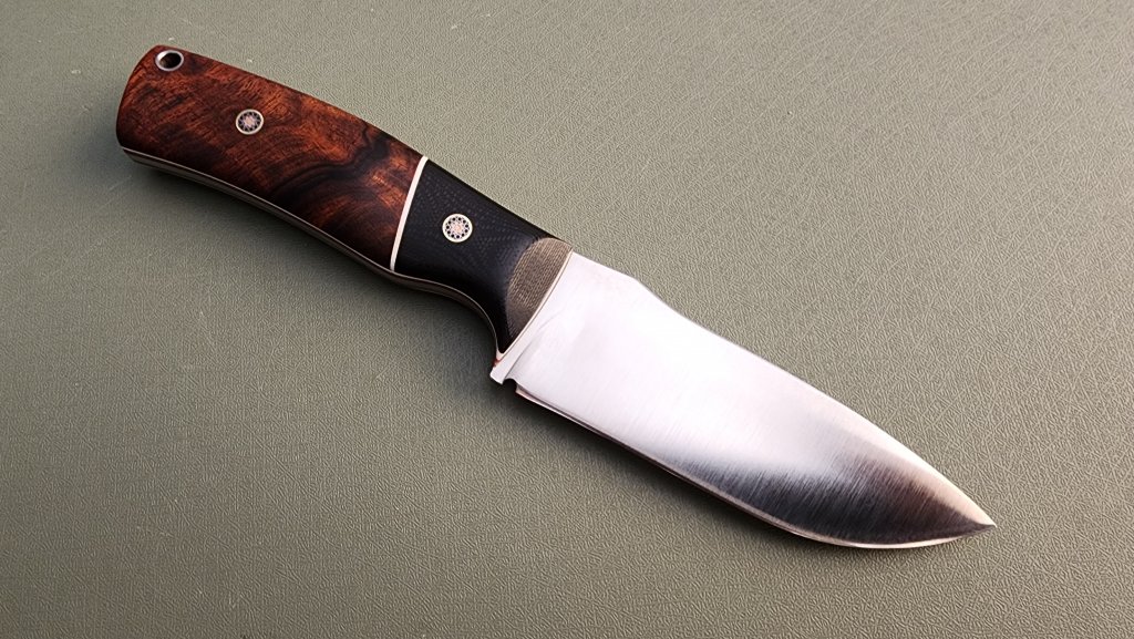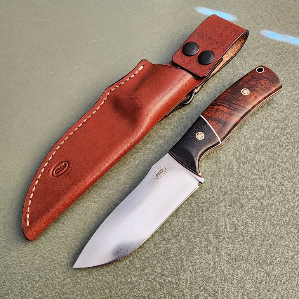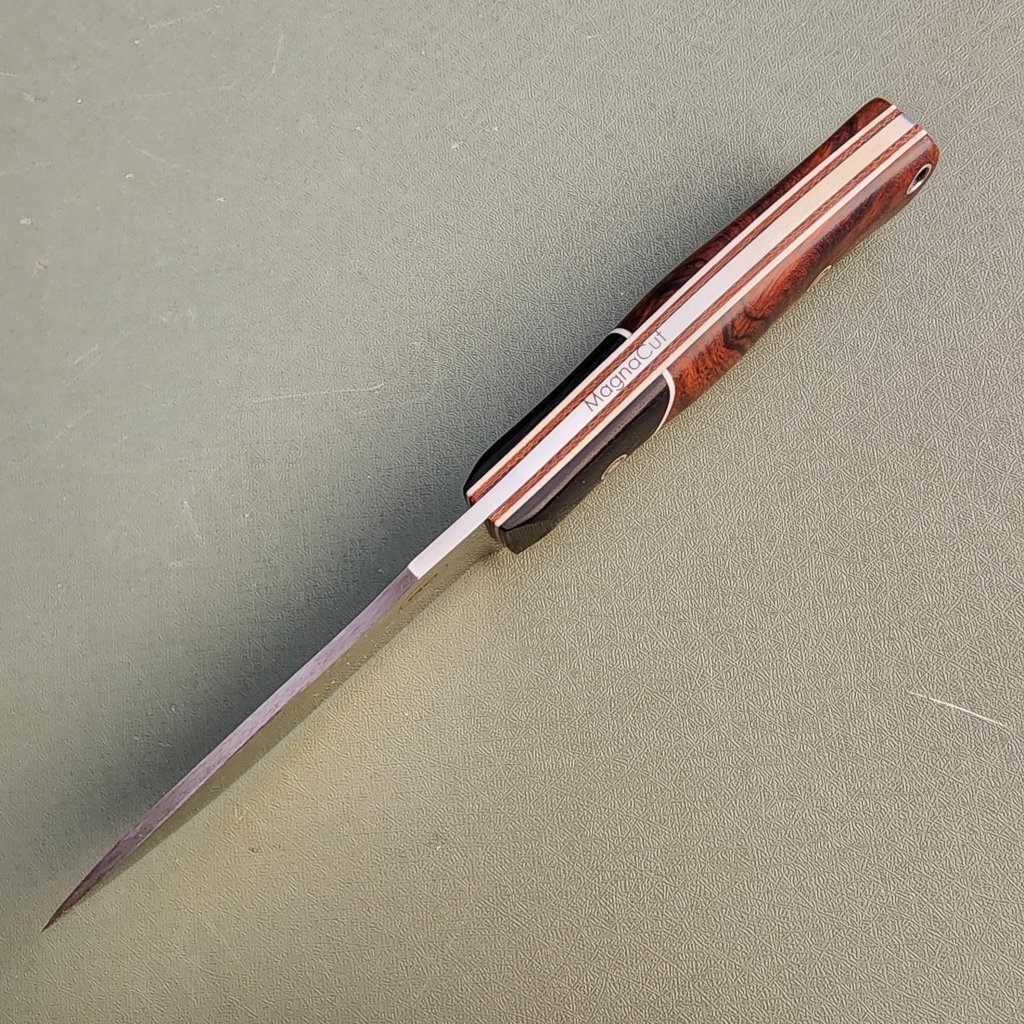 DP4 ironwood with convex bladeavdronJanuary 18, 2026jfield, Midsize knives 0.128″ Magnacut 63RC 4″ blade, 8.5″ overall, 5.8 oz Ironwood, G10
