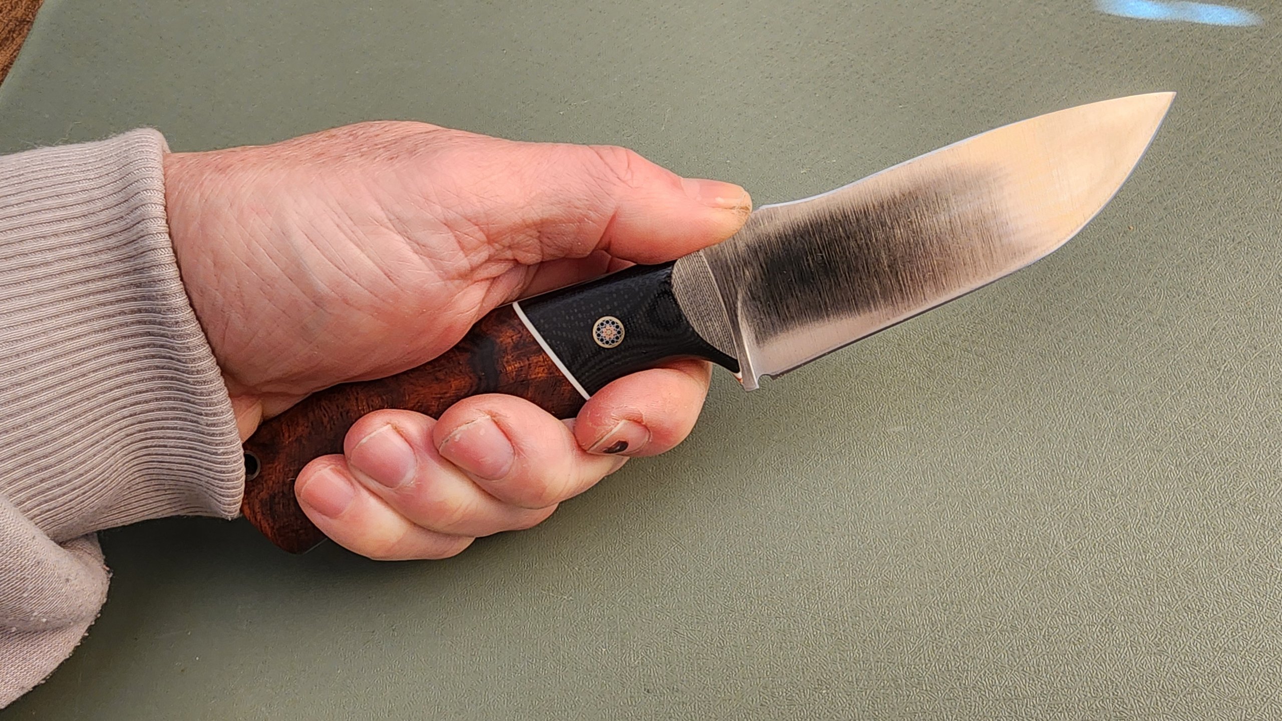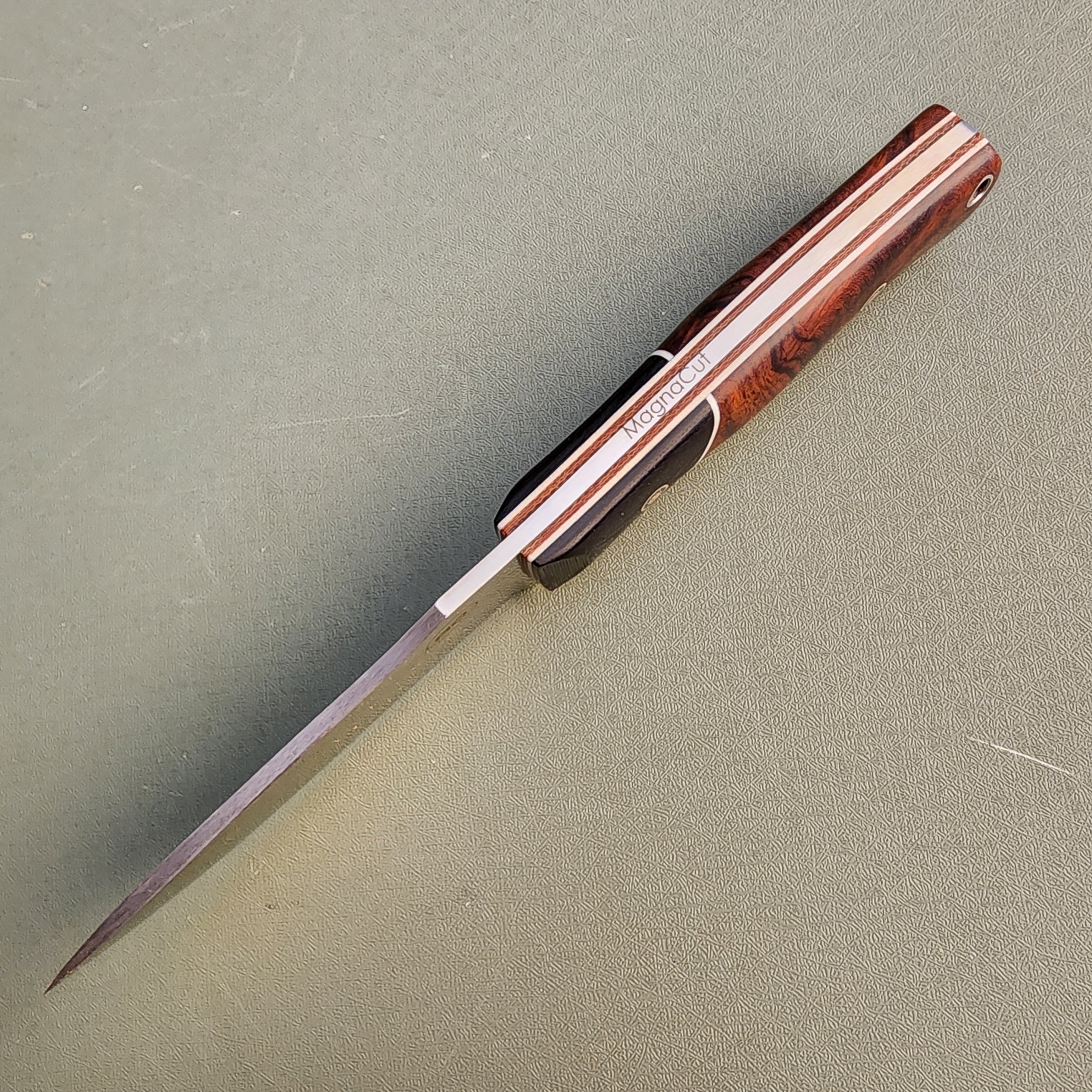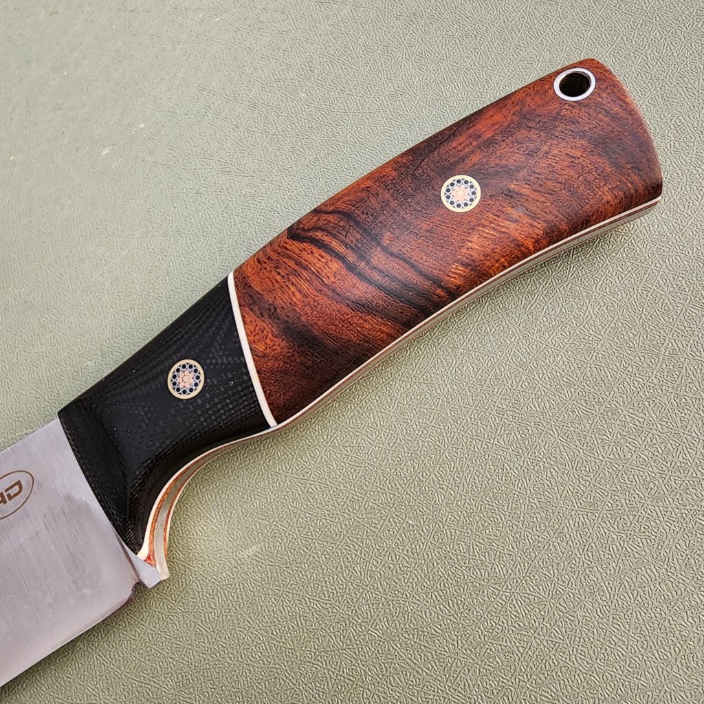 DP4 ironwood with convex bladeavdronJanuary 18, 2026jfield, Midsize knives 0.128″ Magnacut 63RC 4″ blade, 8.5″ overall, 5.8 oz Ironwood, G10