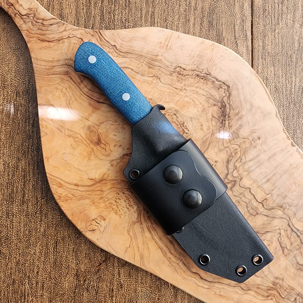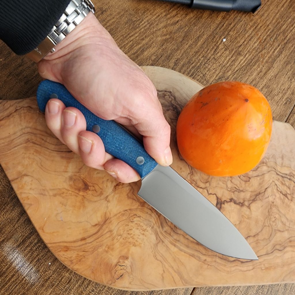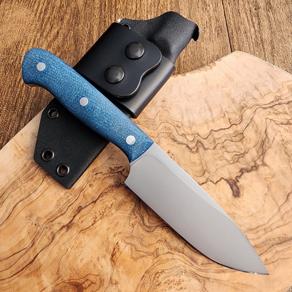 H4 variant in blue jute micarta 0.13″ Magnacut 63 RC 8.8″ overall 4.3″ blade 5.4 oz admiral blue jute micarta November 22, 2025 In Midsize knives, misc ← Previous post