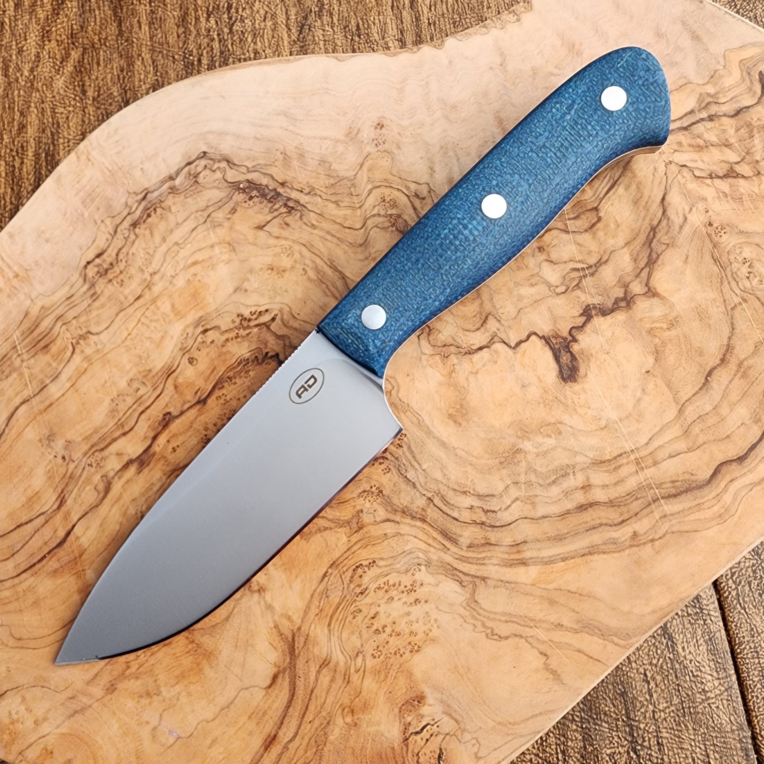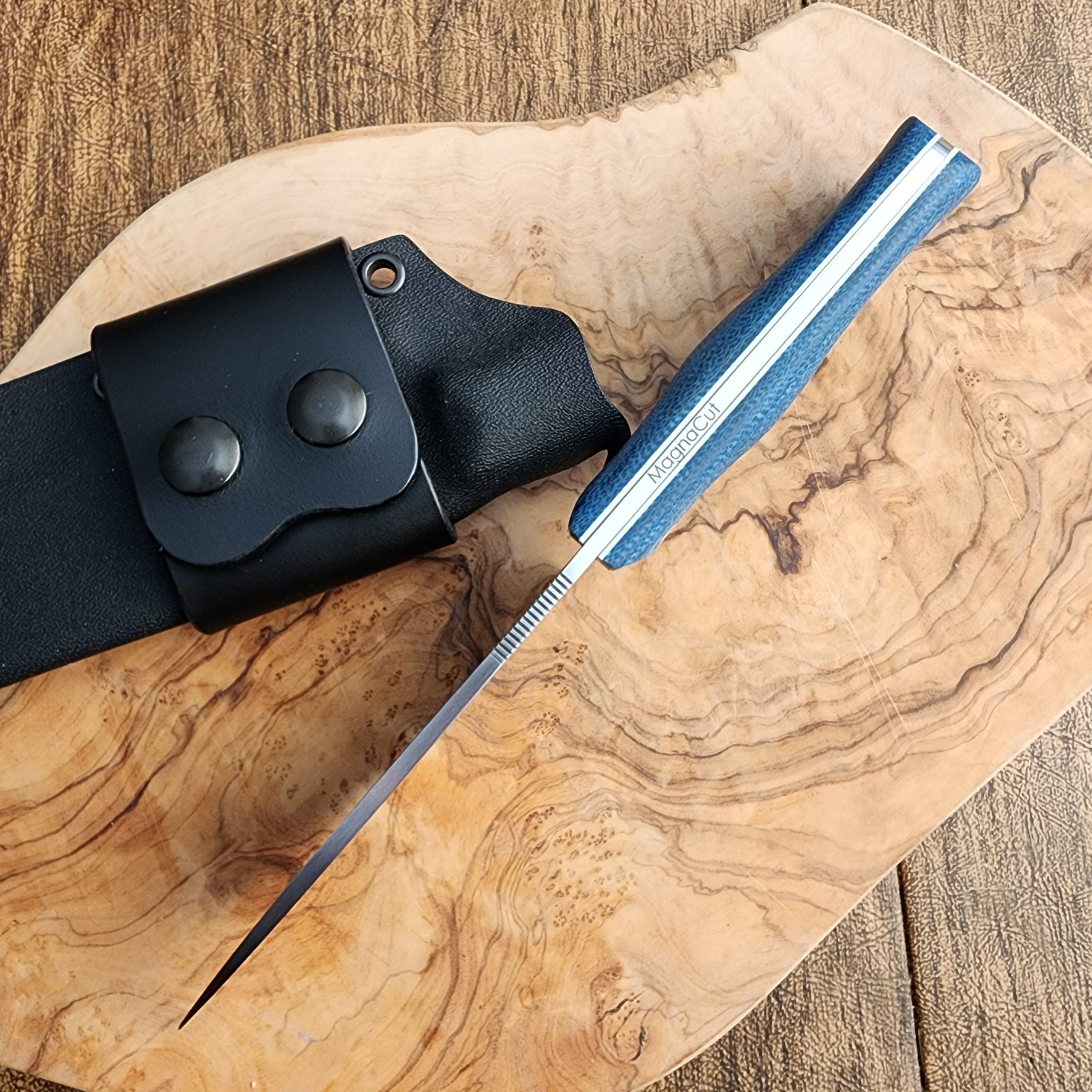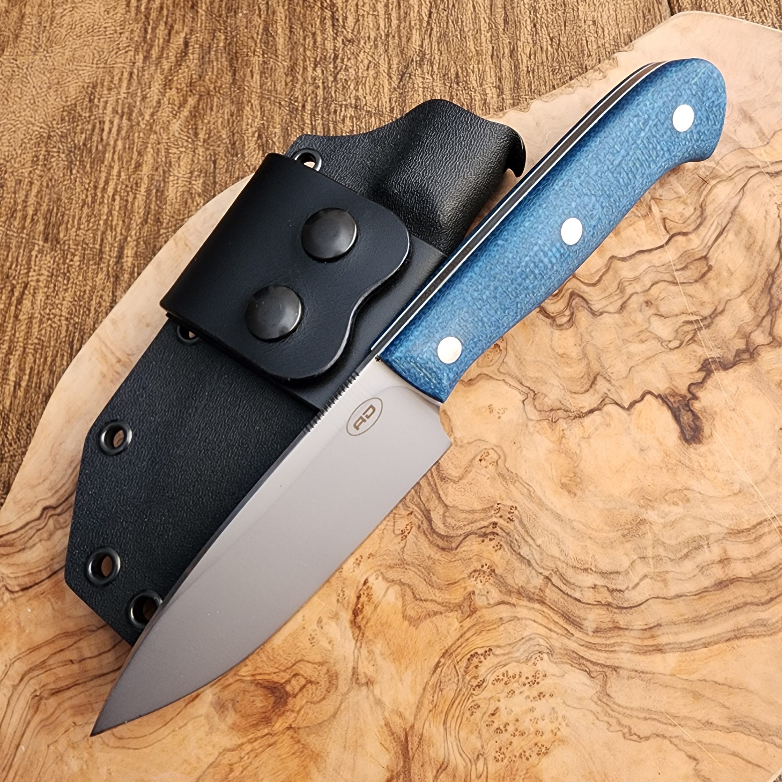H4 variant in blue jute micarta 0.13″ Magnacut 63 RC 8.8″ overall 4.3″ blade 5.4 oz admiral blue jute micarta November 22, 2025 In Midsize knives, misc ← Previous post