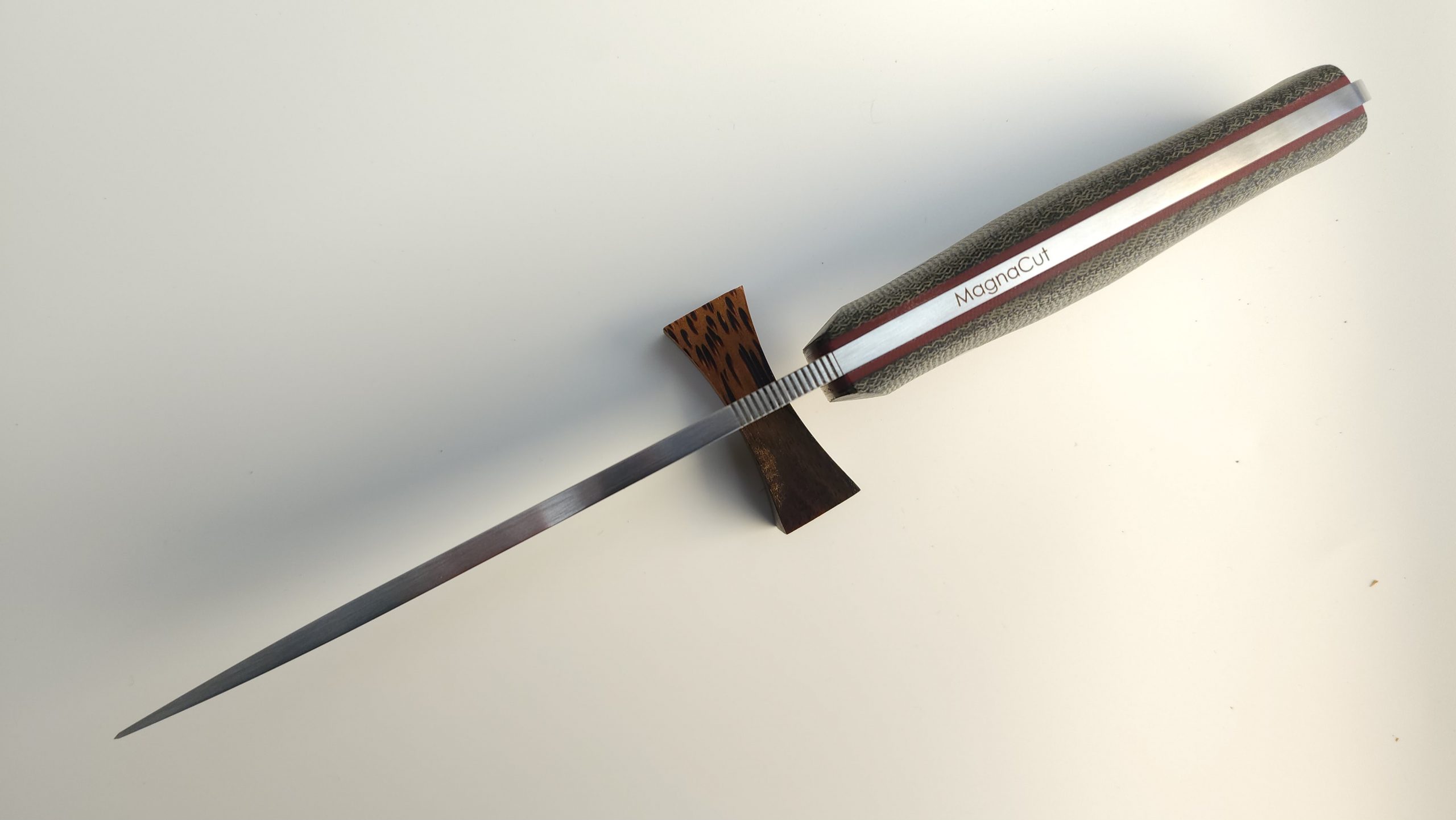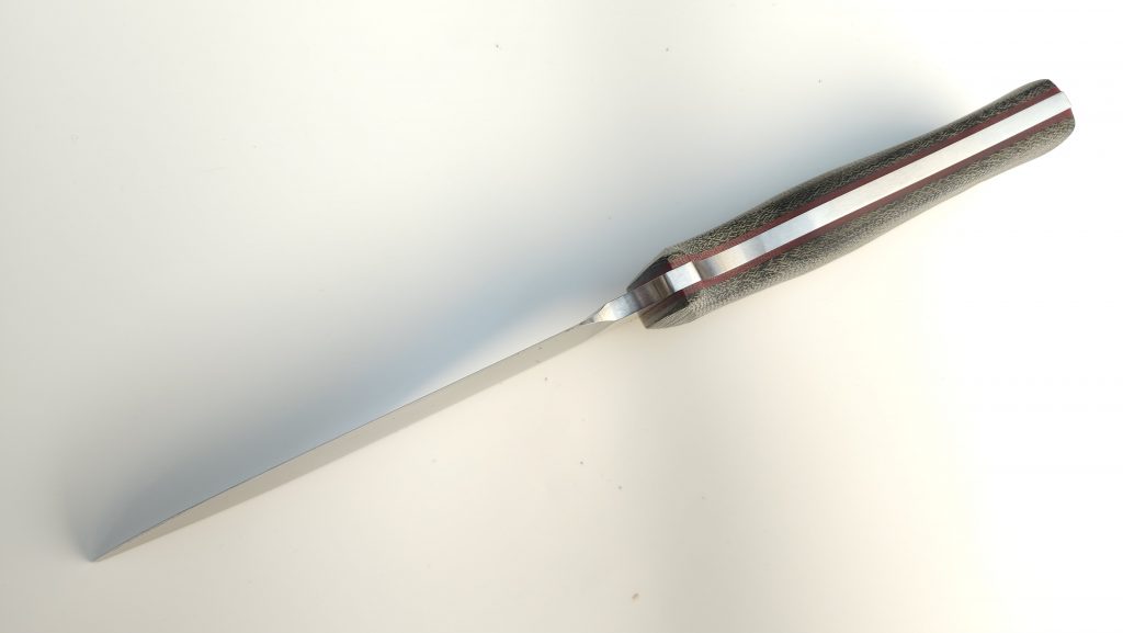 Inspired by RMD https://youtu.be/DkZ-y70Ewm0 Magnacut 0.18″ 63 RC 5.5″ blade, 10.3″ overall vintage micarta January 6, 2026 In bushcrafter, Large knives, misc, Other ← Previous post