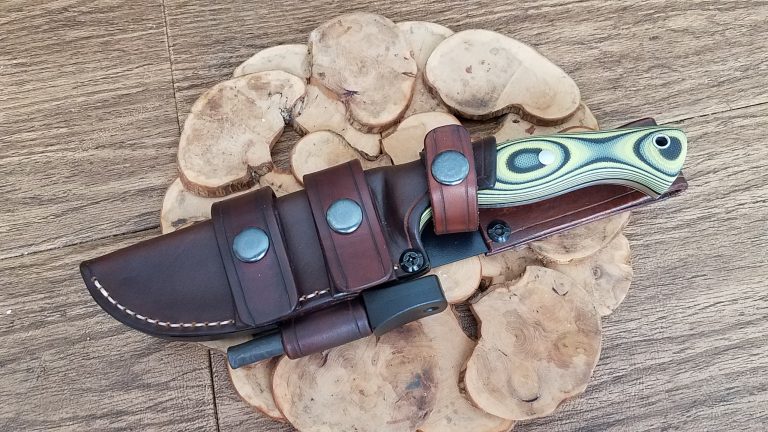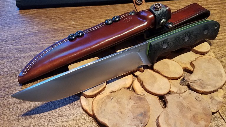 0.210″ S35VN 60-61RC 12.25″ OAL, 7″ blade, 1.375″ wide 12.75 oz net weight G10, corby bolts leather scout sheath with vertical carry conversion