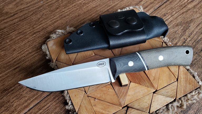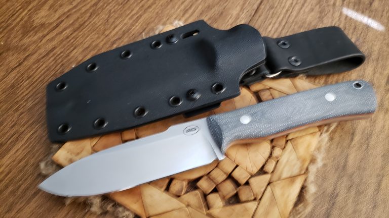 0.138″ MagnaCut 62RC 4.3″ blade, 8.8″ overall, 6.5 oz Natural micarta, W&C leather